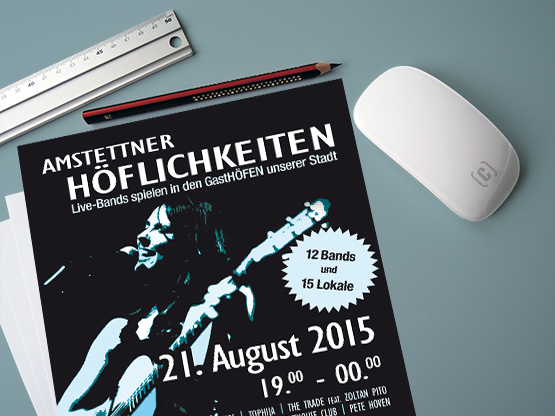Weiters gestalten wir Plakate, Flyer, Magazine, Inserate und Anzeigen in Zeitschriften.